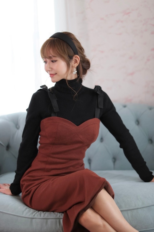 肩の紐が可愛いビスチェドレス 身体のラインを綺麗に見せてくれてスタイルアップするドレスです