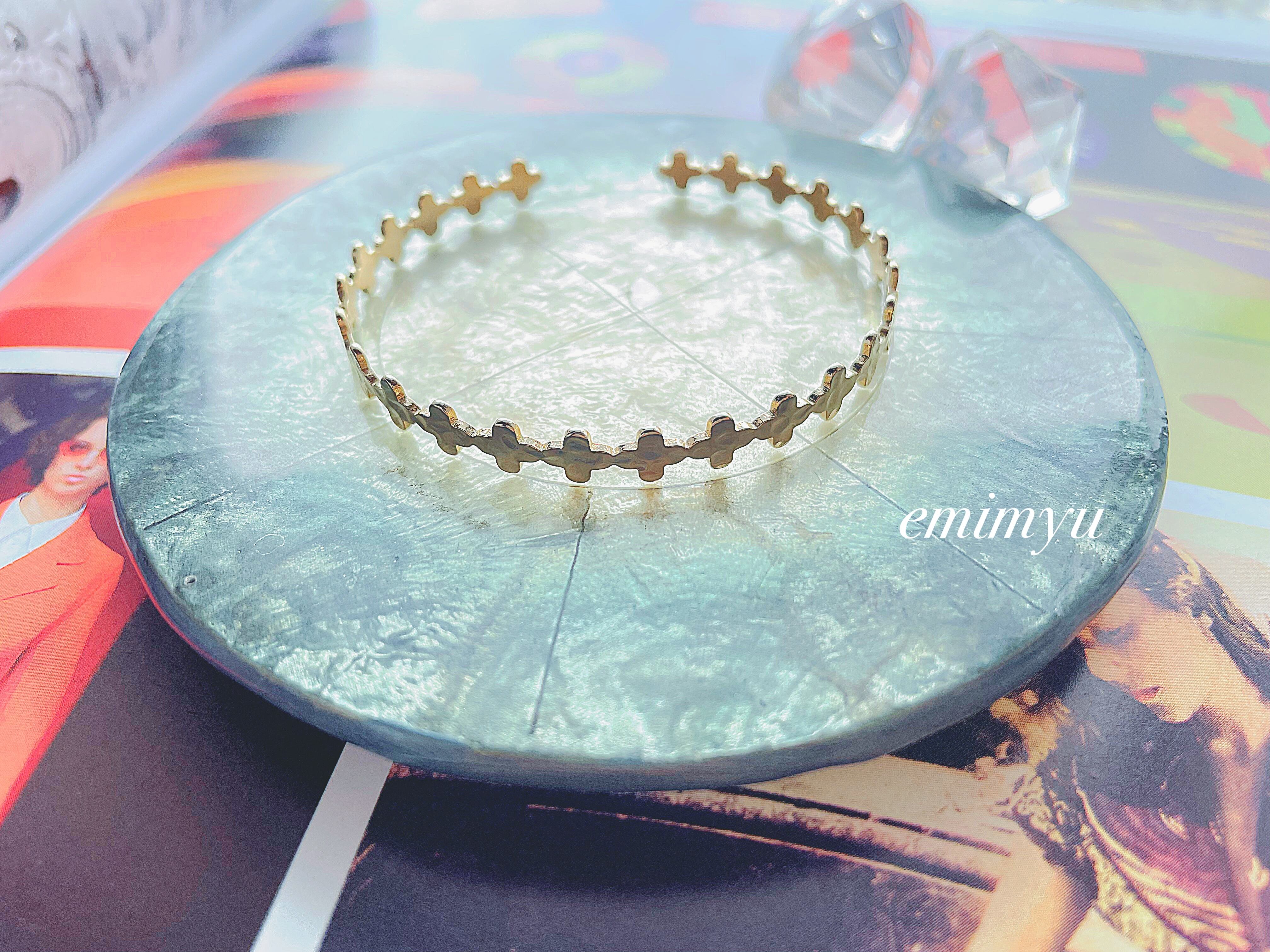 このバングルは、手首を華やかに彩り、どんなスタイルにも自然と溶け込む存在感を演出します。高品質な素材が使用されており、肌にやさしくフィットする心地よい着用感が特徴です。
