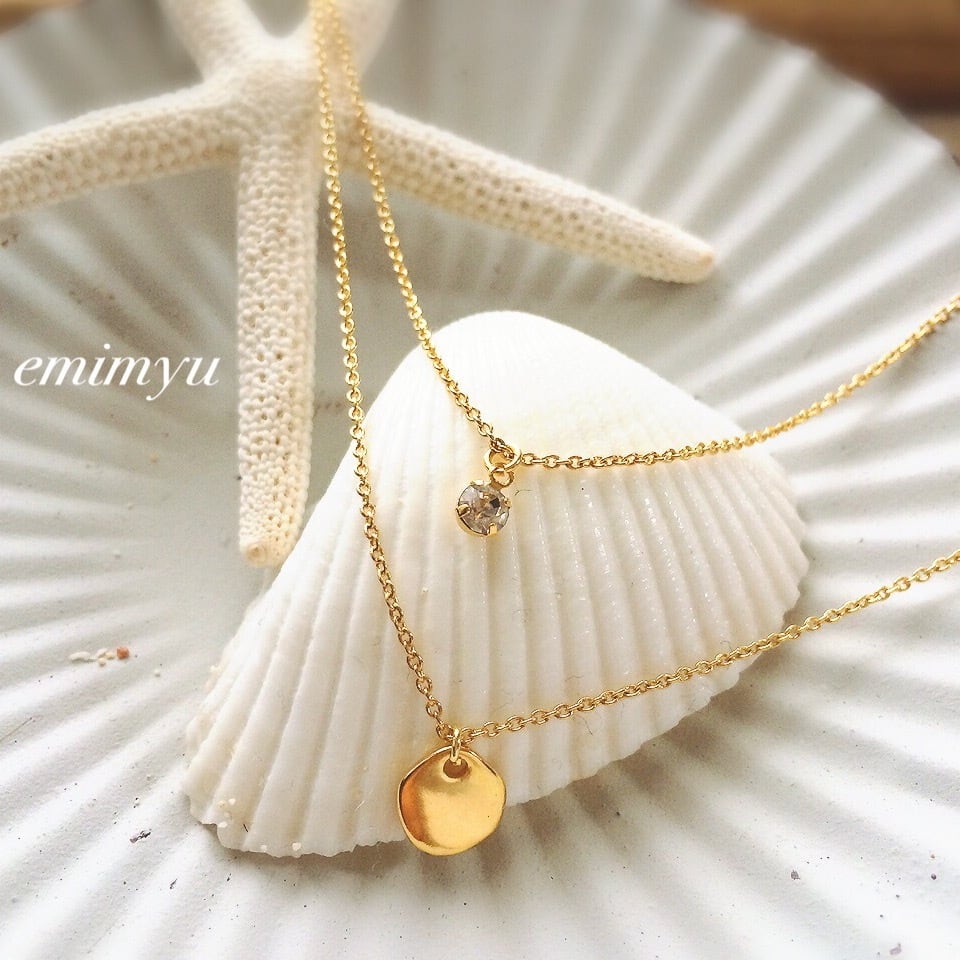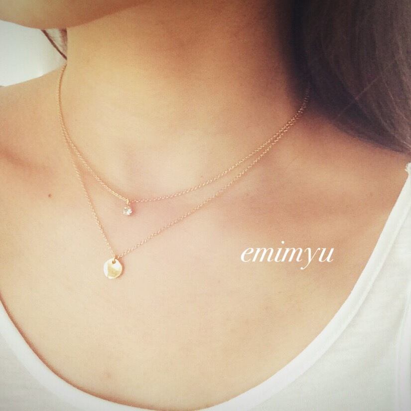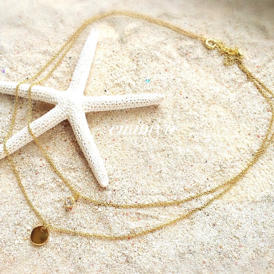 華奢なダブルチェーンに18Kコーティングされた土台の中にジルコニア、18Kのメタルパーツを使用して洗練された大人にデザインに仕上げました。
