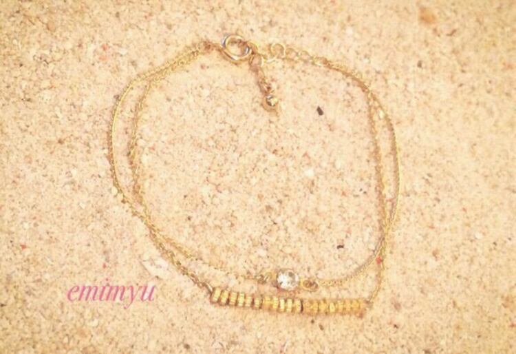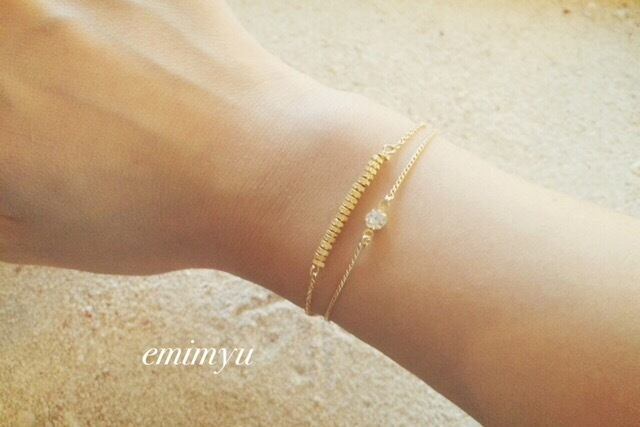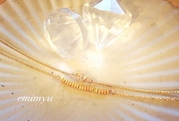 2種類の華奢なチェーンを使いゴールドのメタルビーズと一粒ジルコニアをポイントに上品なデザインしました。