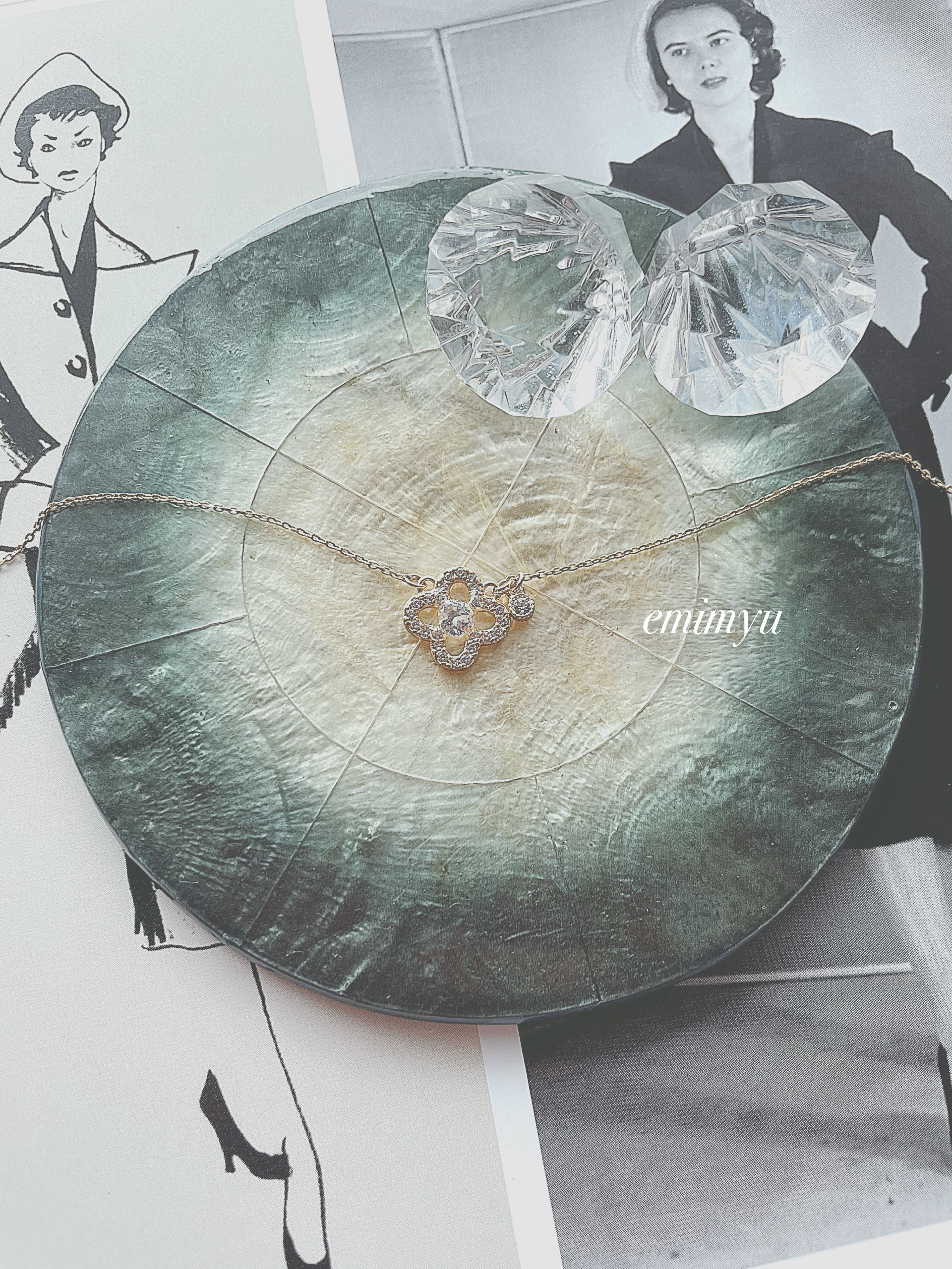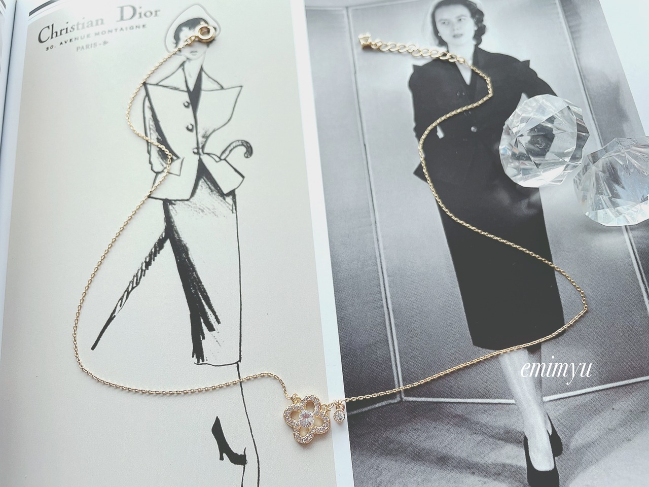 エレガントなフラワーモチーフのパーツをメインにしたネックレス