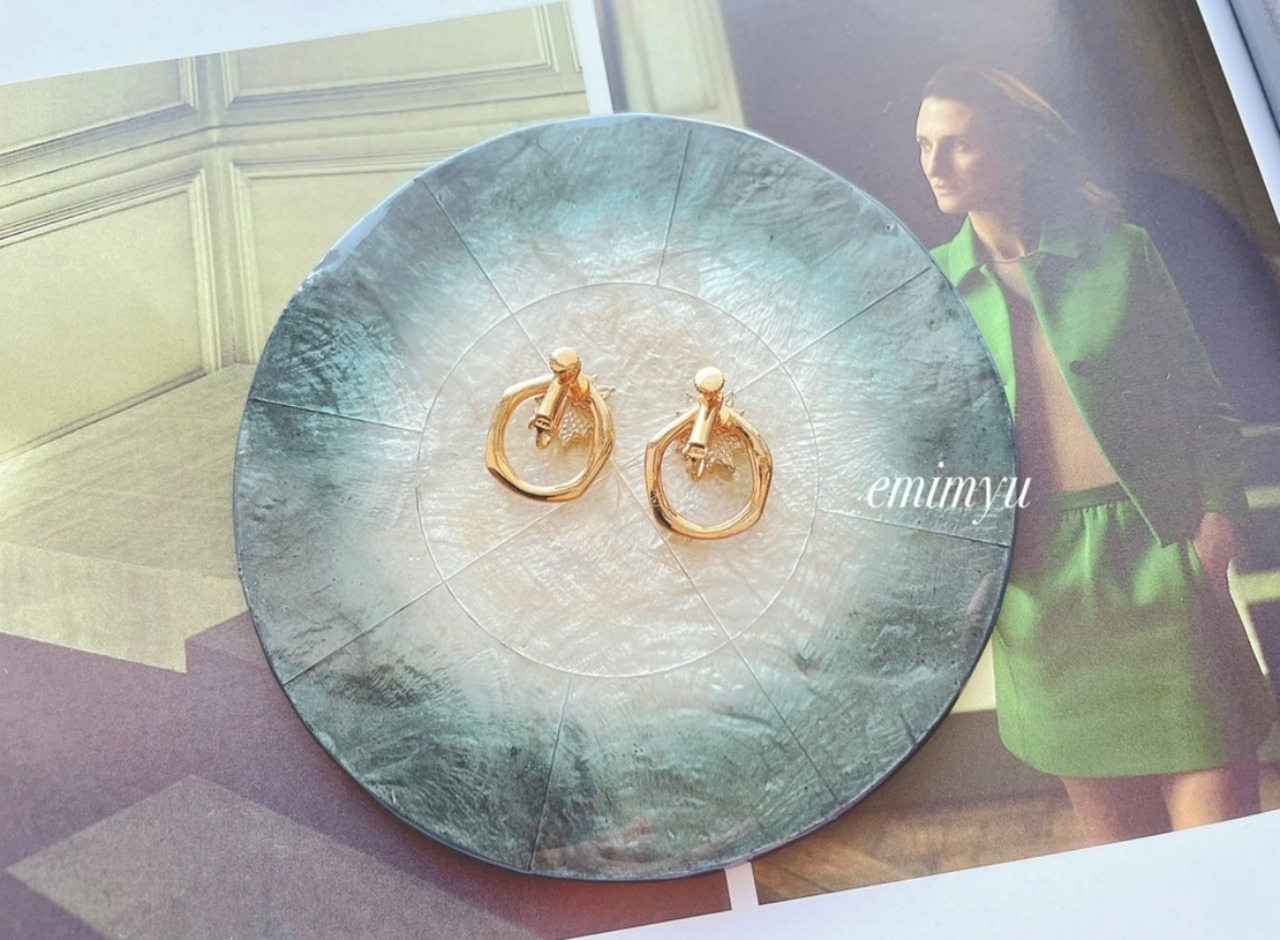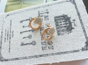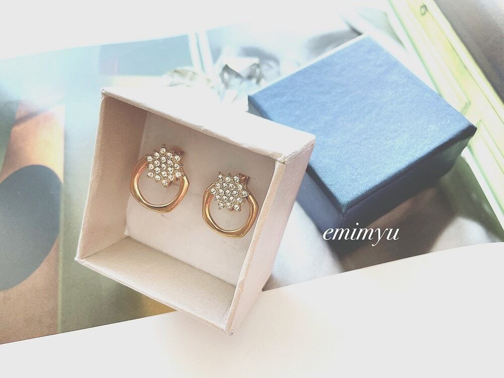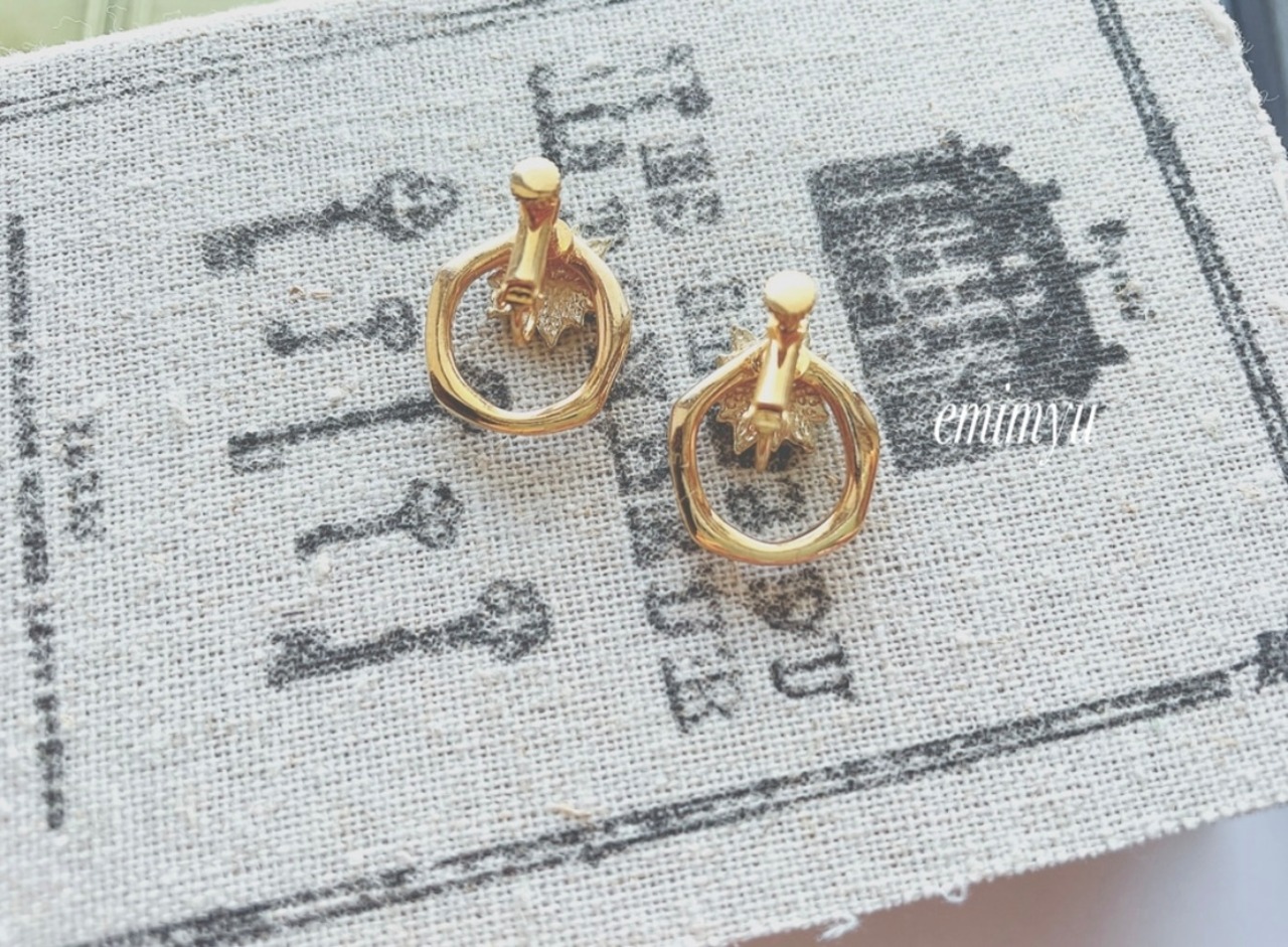 フラワーのジルコニアとゴールドのヘキサゴンイヤリングが組み合わさったオリジナルデザイン