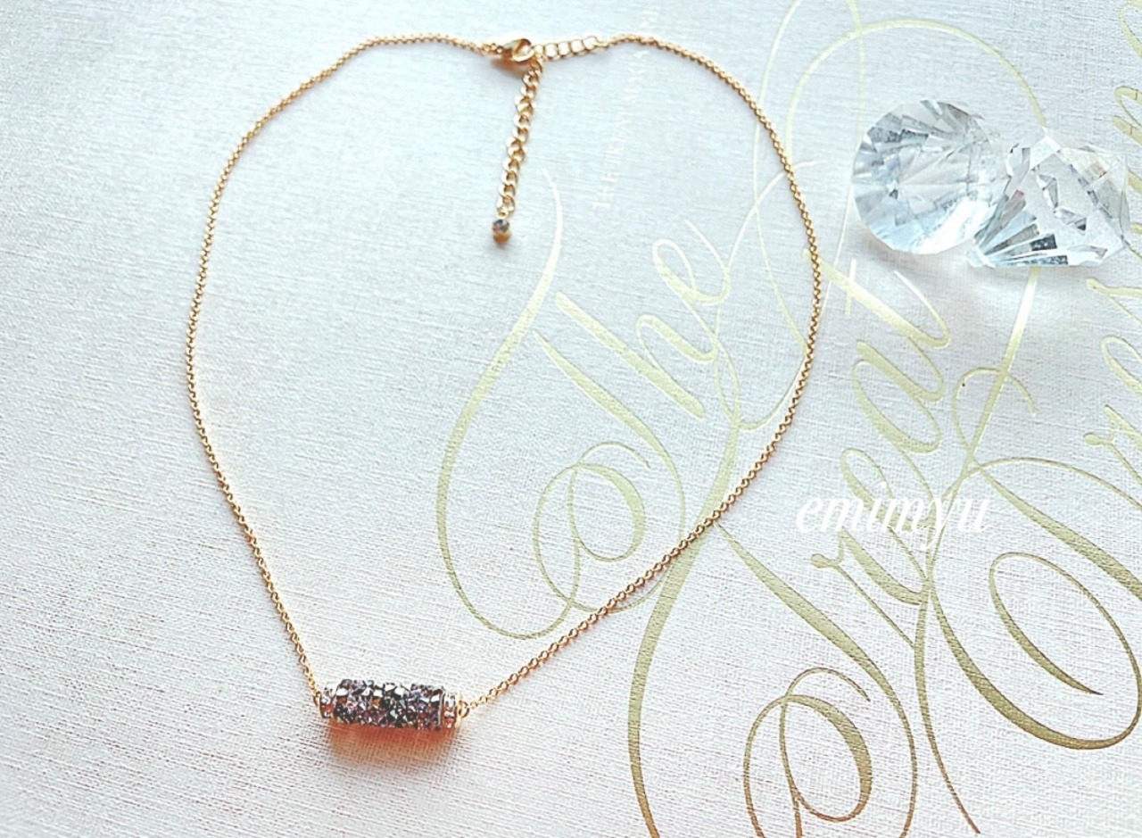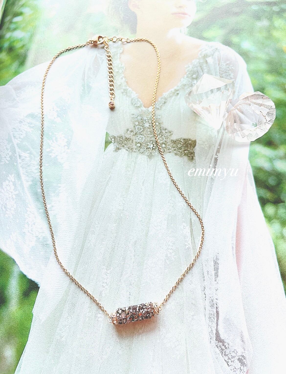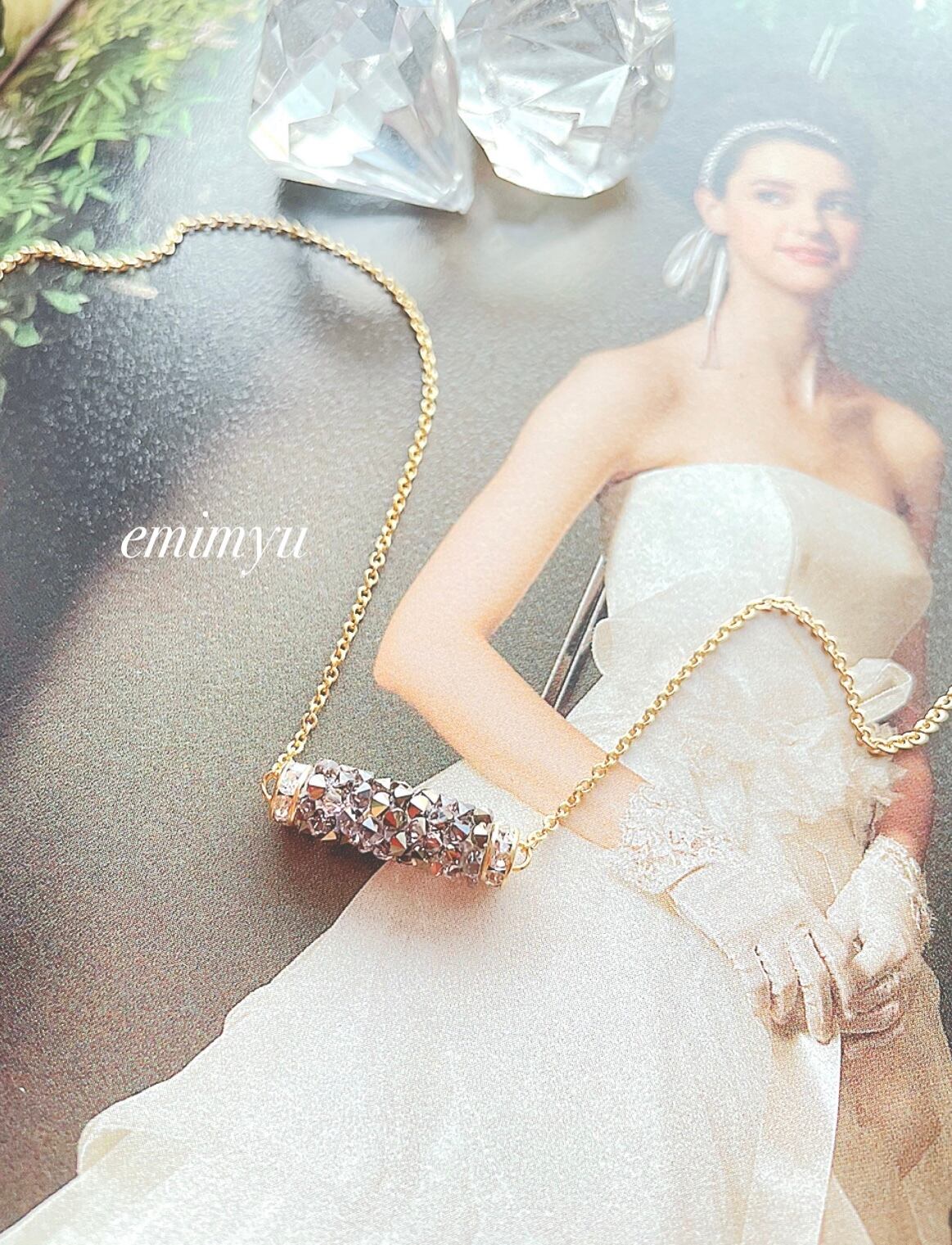 スワロフスキーのクリスタルスティックとロンデルをサイドに挟んだとても煌びやかなネックレス