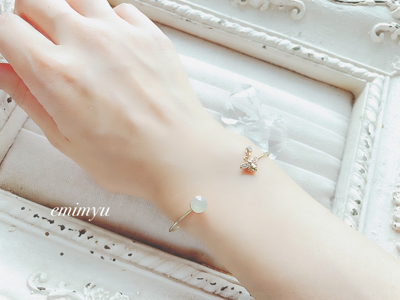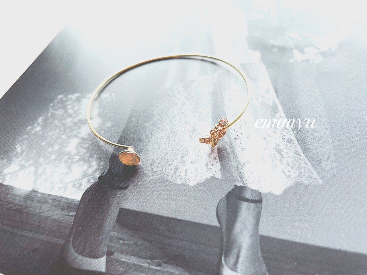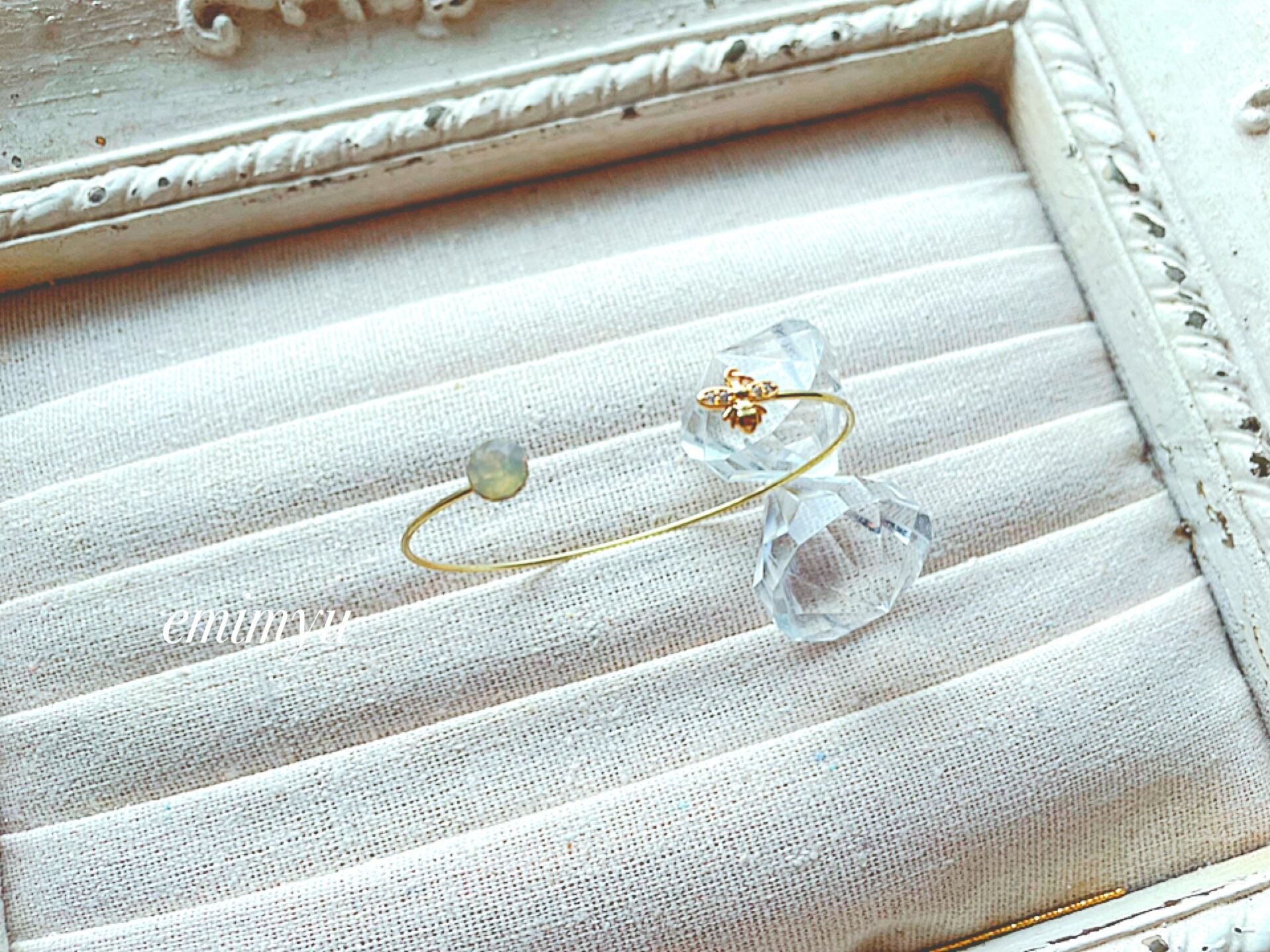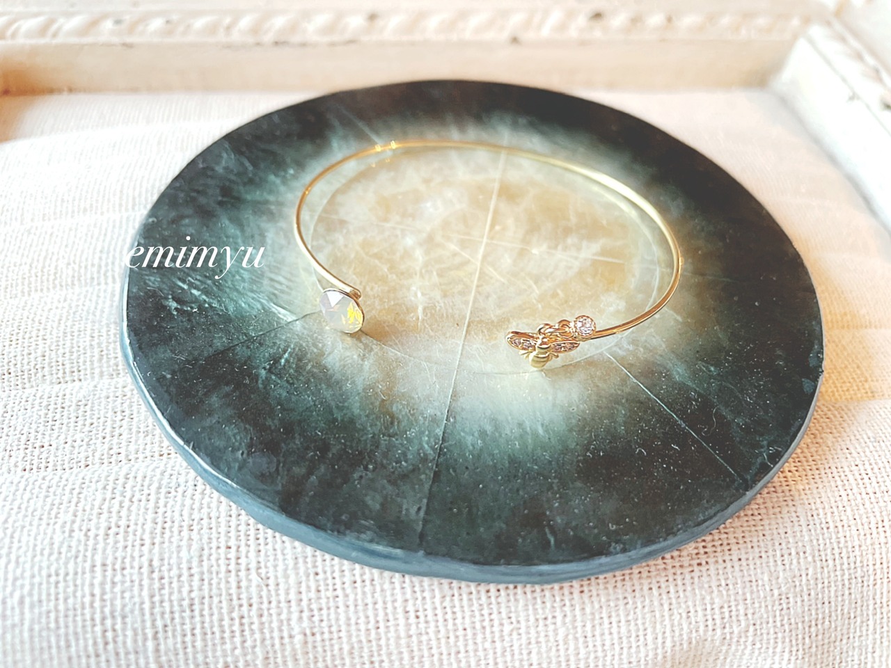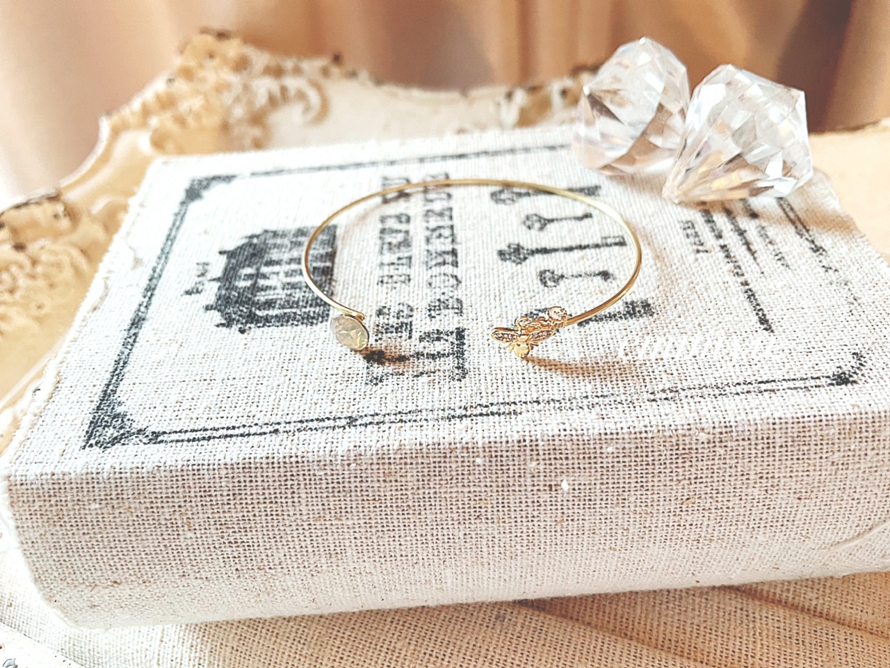 可愛いミツバチパーツとブラウンクリスタルをメインにしたバングル