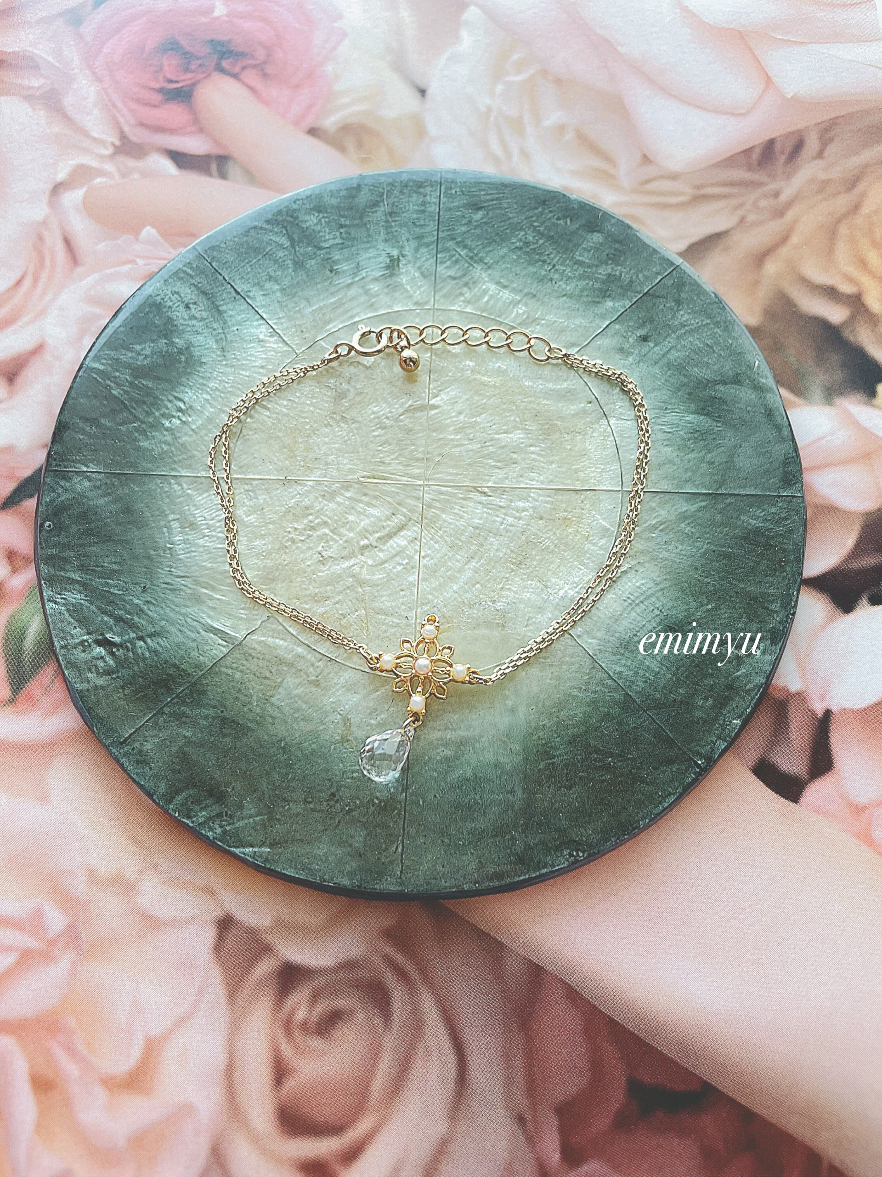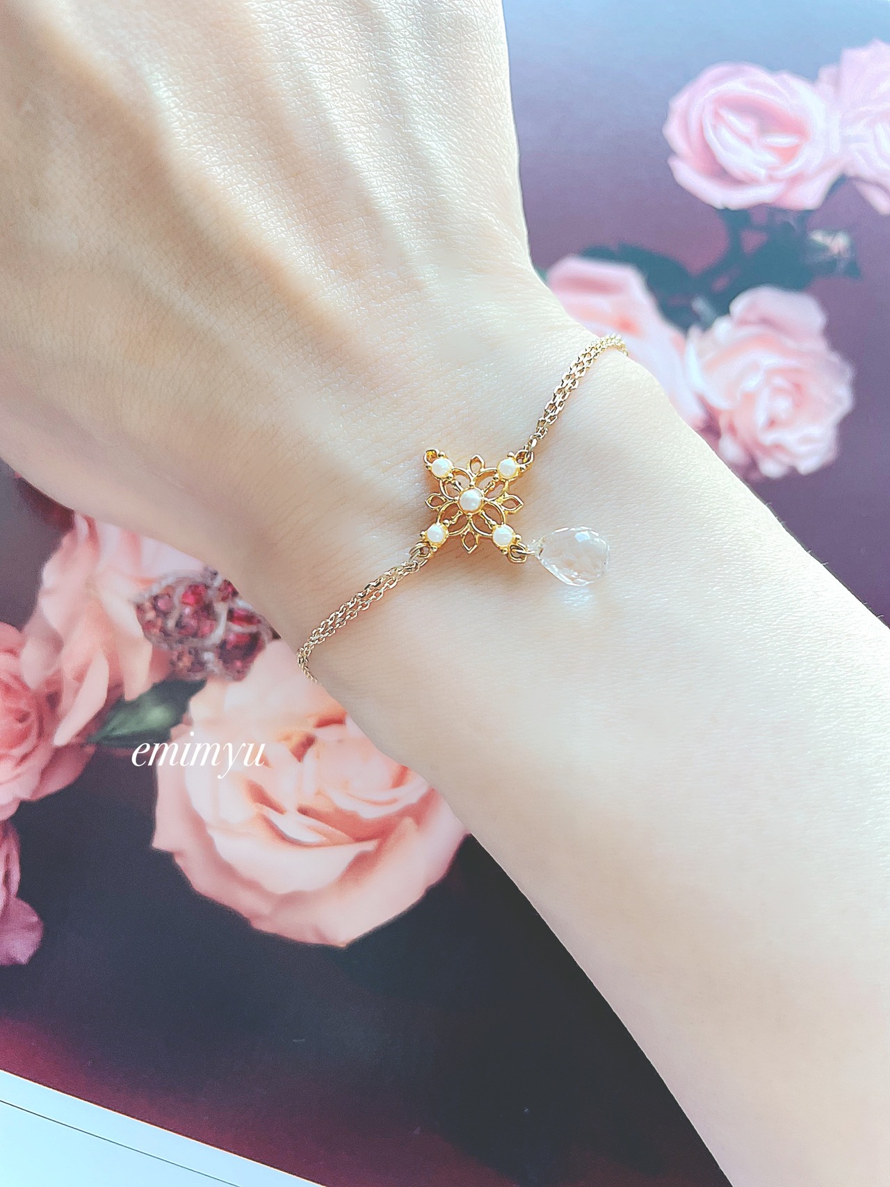 手元に、雪の結晶が咲くような輝きを添えるブレスレット。