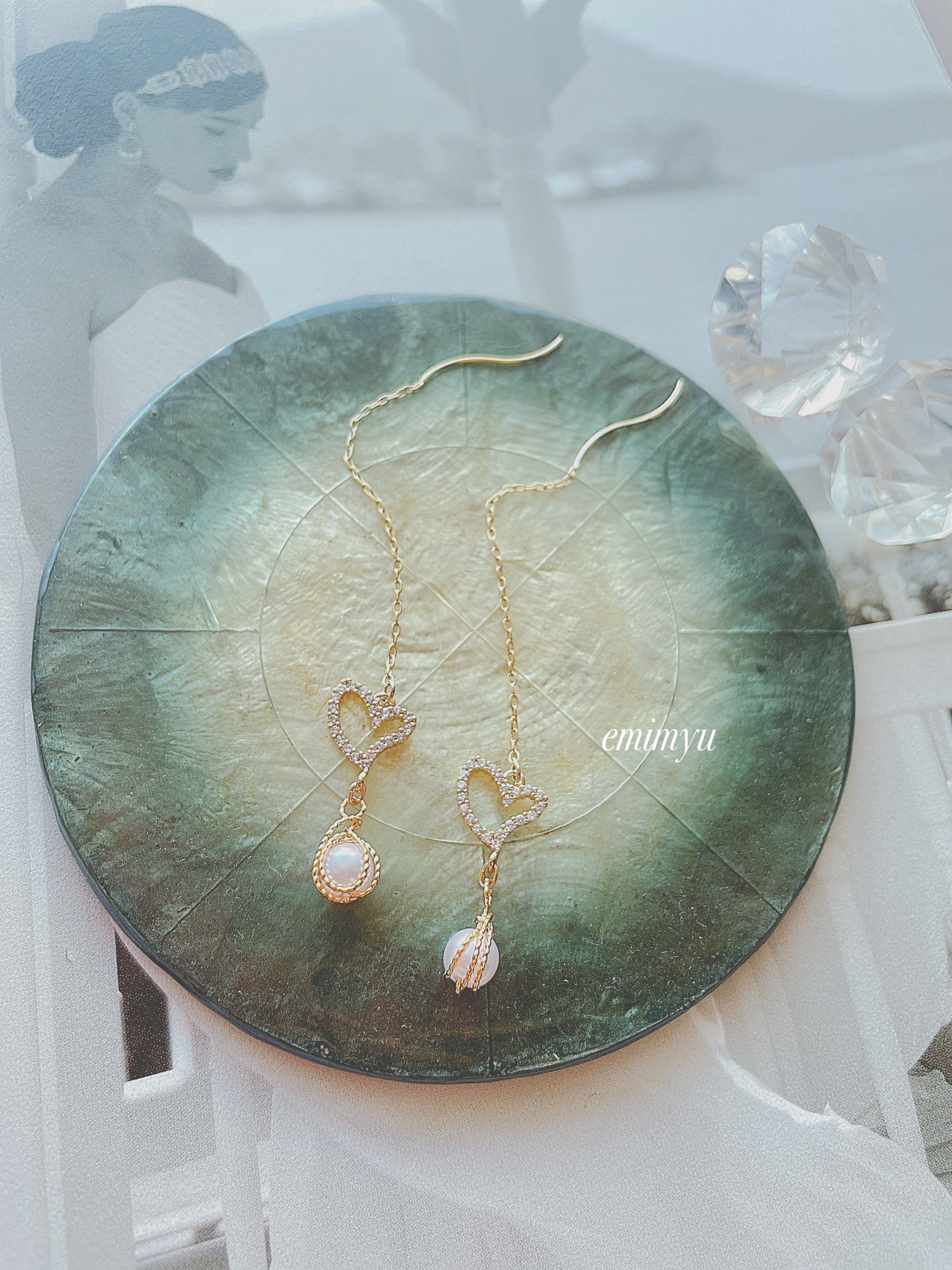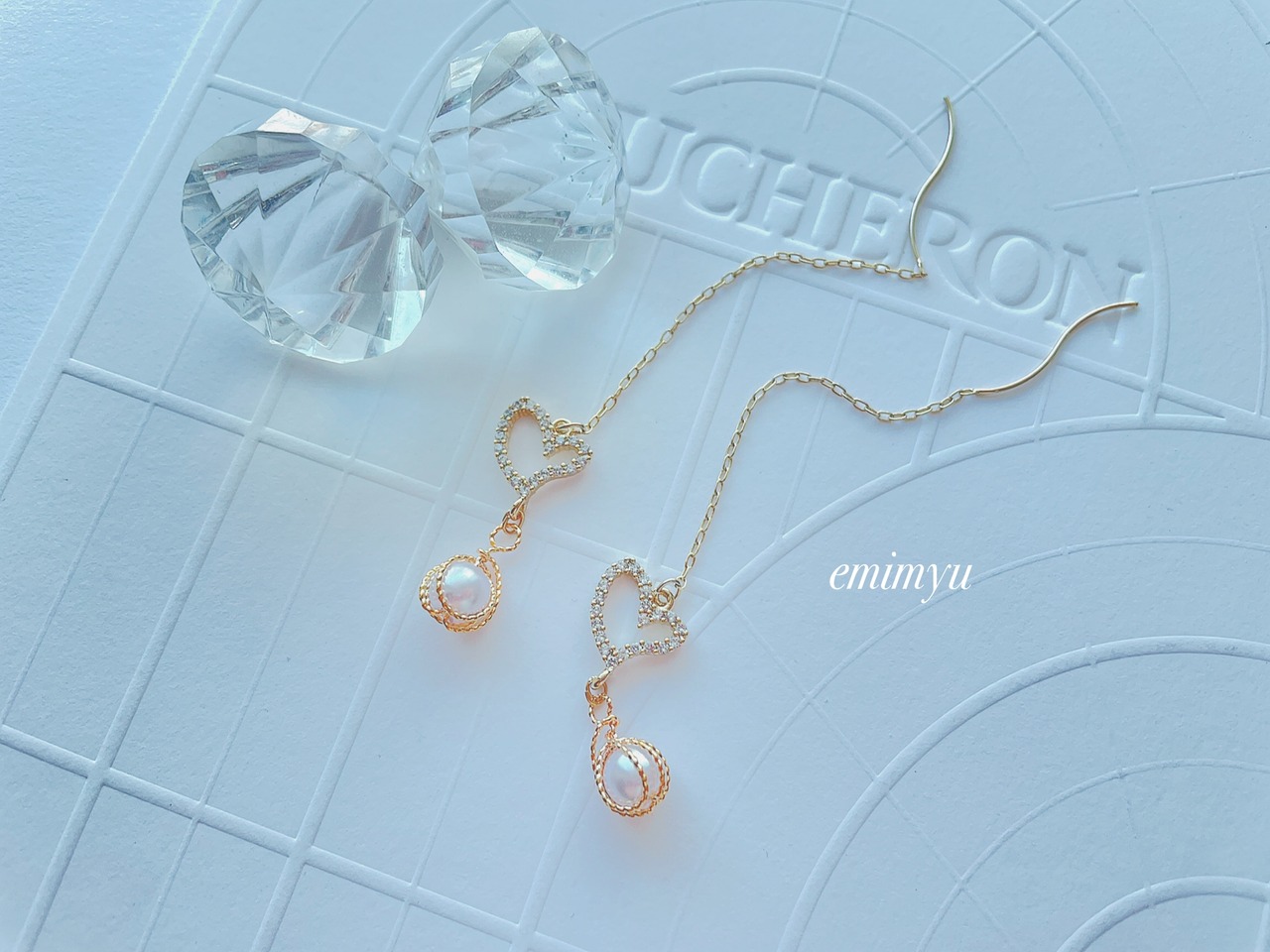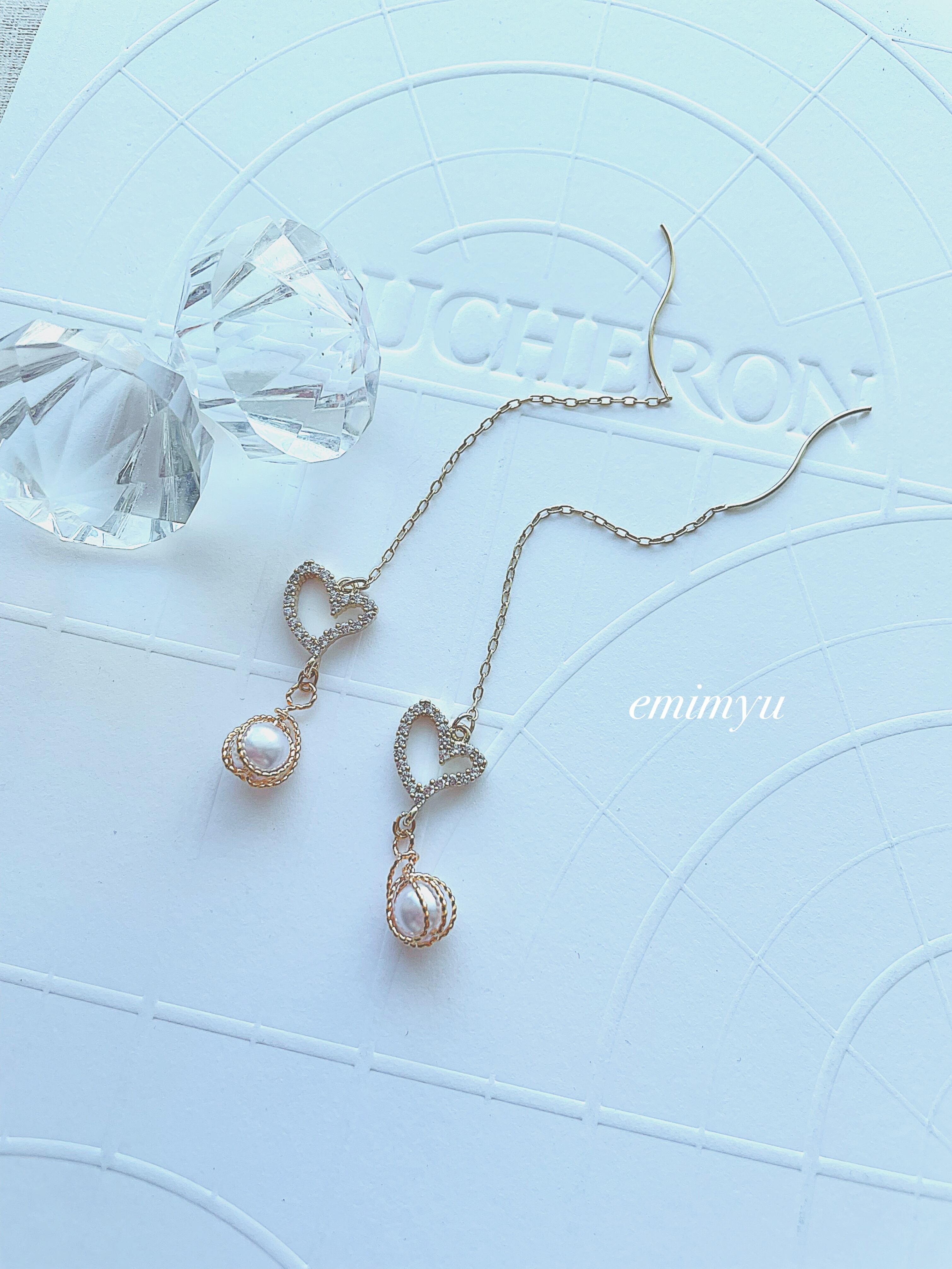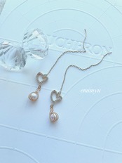 クリスタルハートパーツをメインにしたチェーンピアス