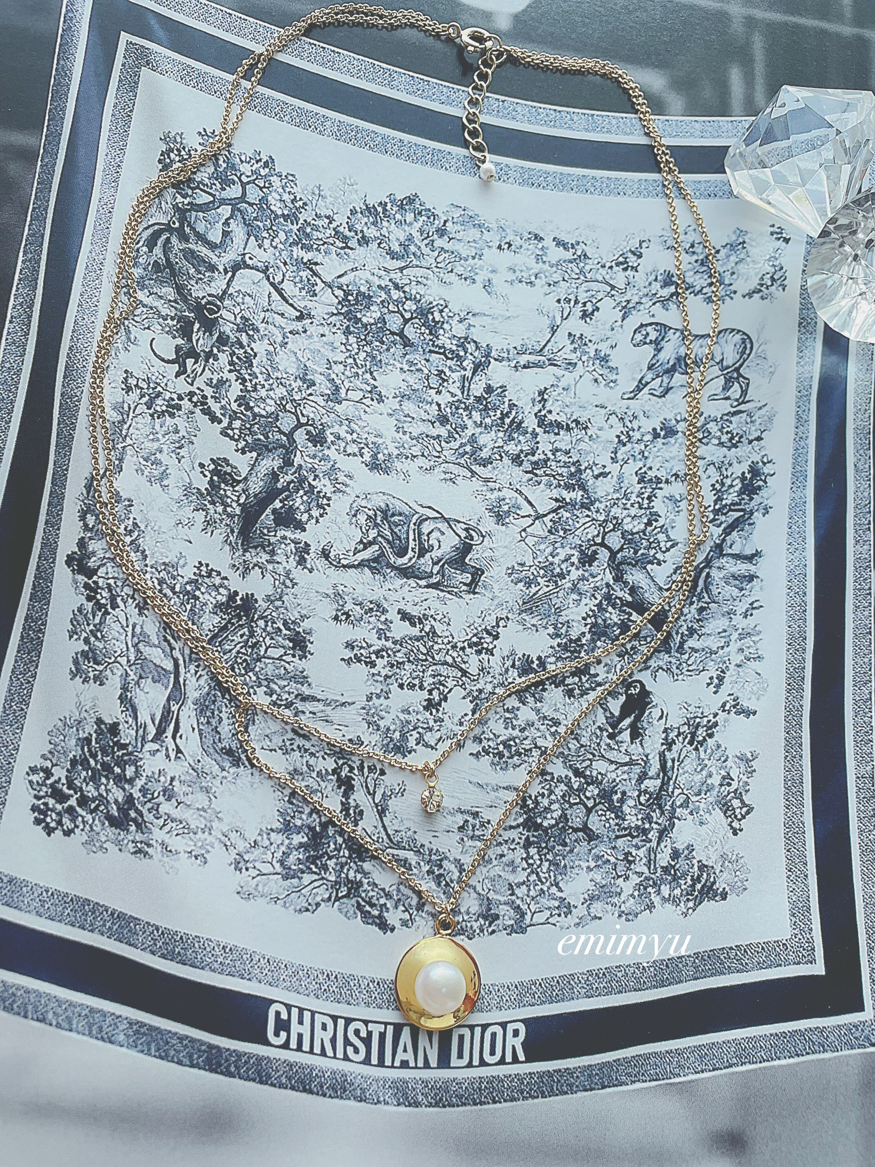 繊細なダブルチェーンが首元を飾り、どんな服装にも合わせやすく、日常使いからお出かけスタイルまで幅広く活躍します。