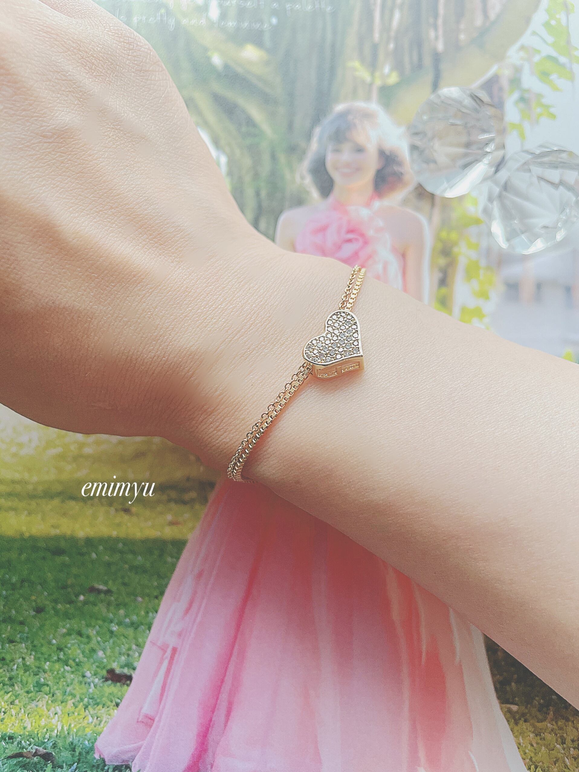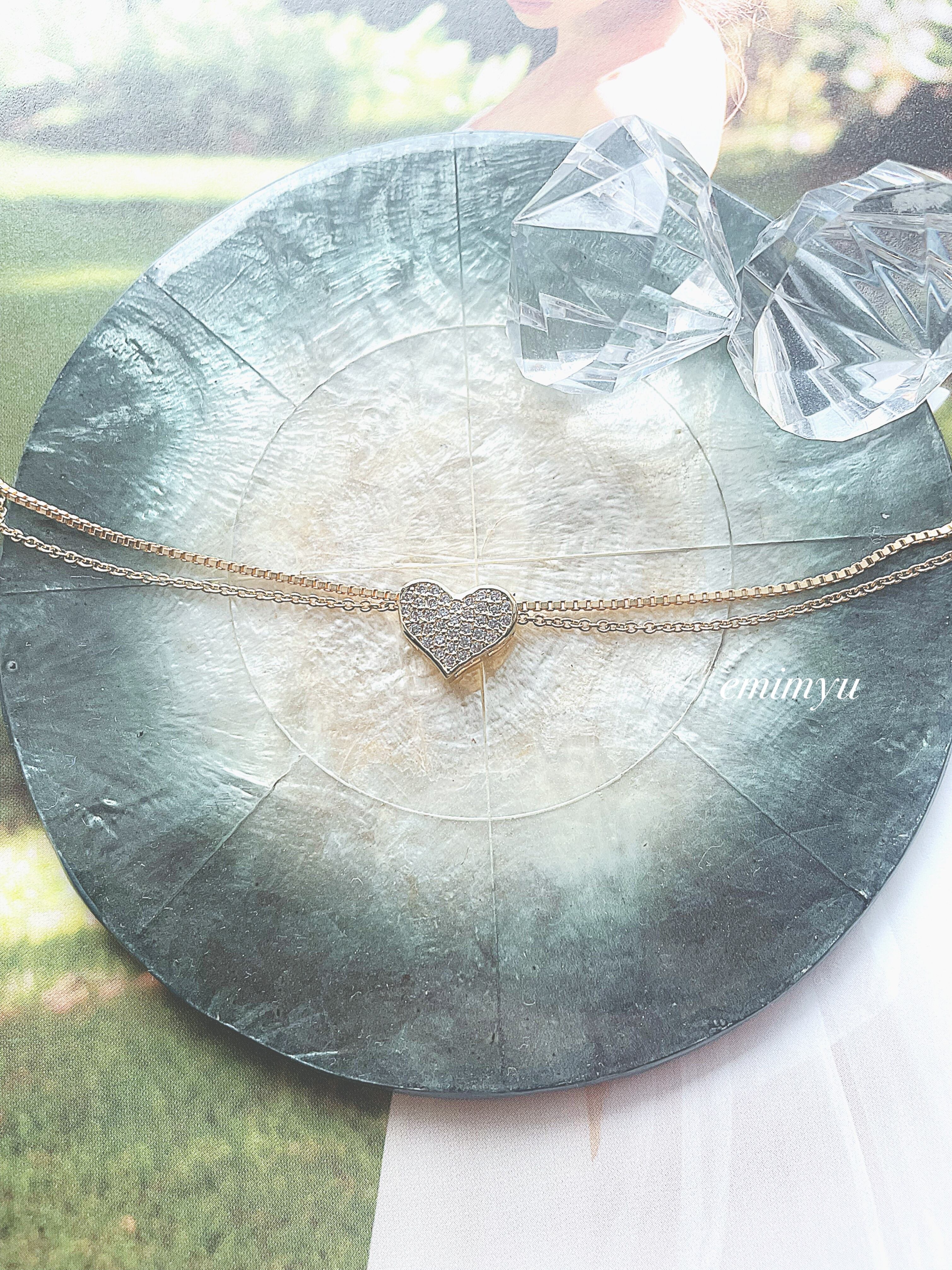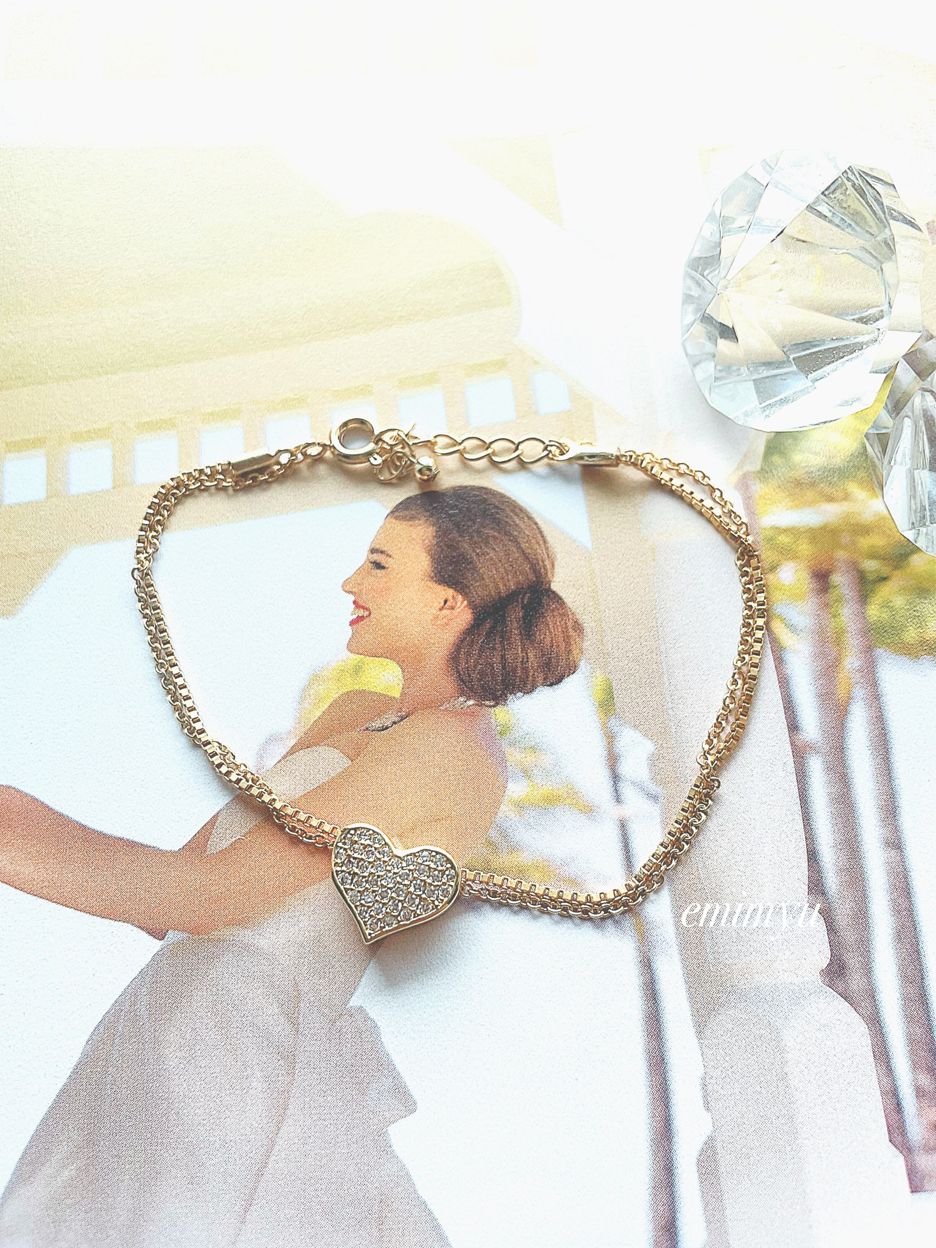 Zirconia Heart Double Chain Gold Braceletは、エレガントなデザインと高品質な素材で女性らしさを引き立てるブレスレットです。
