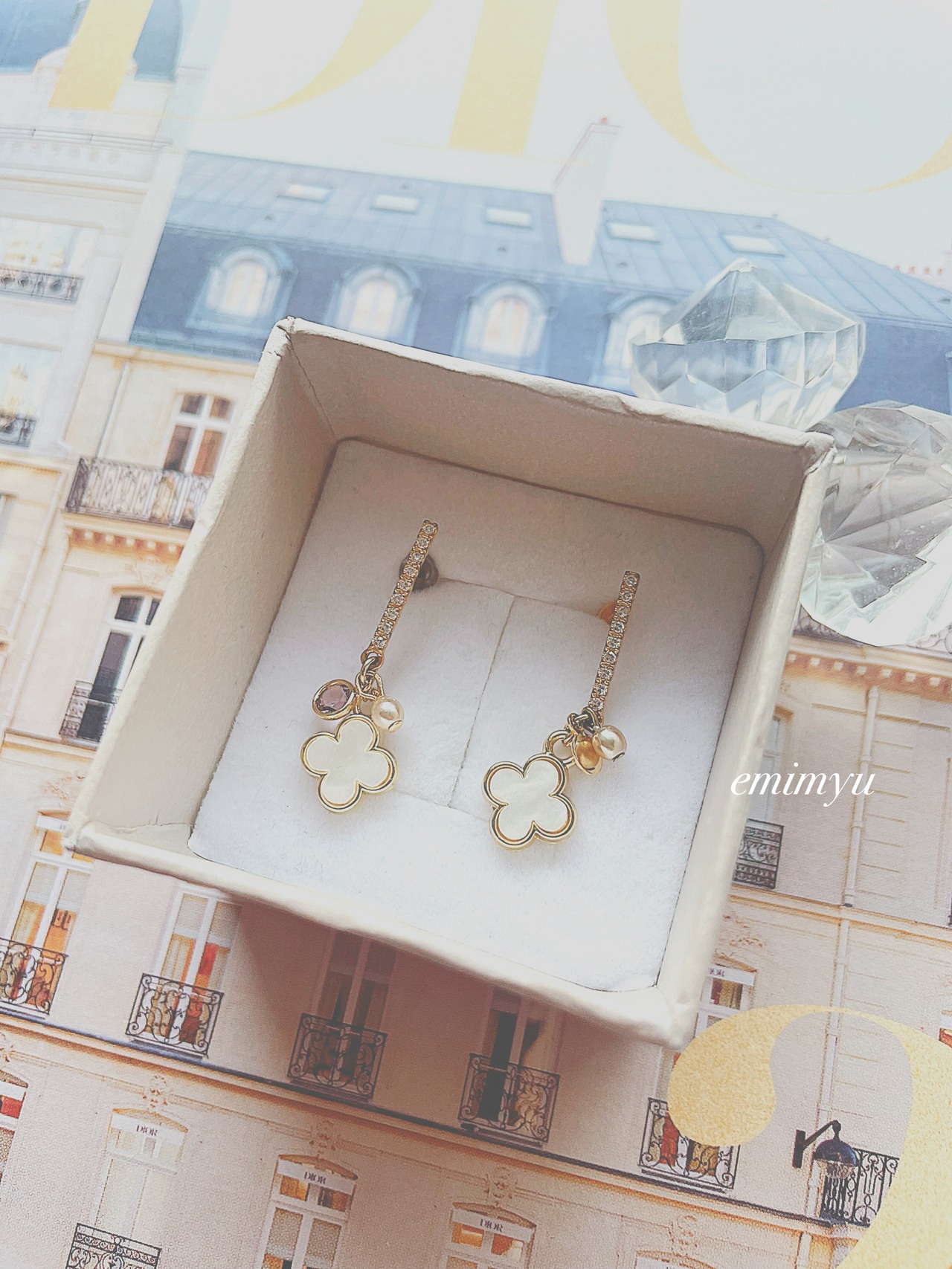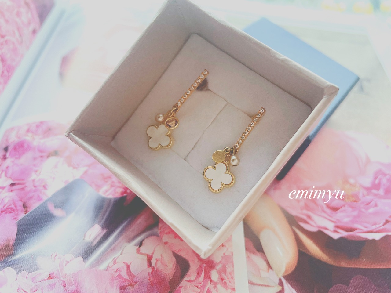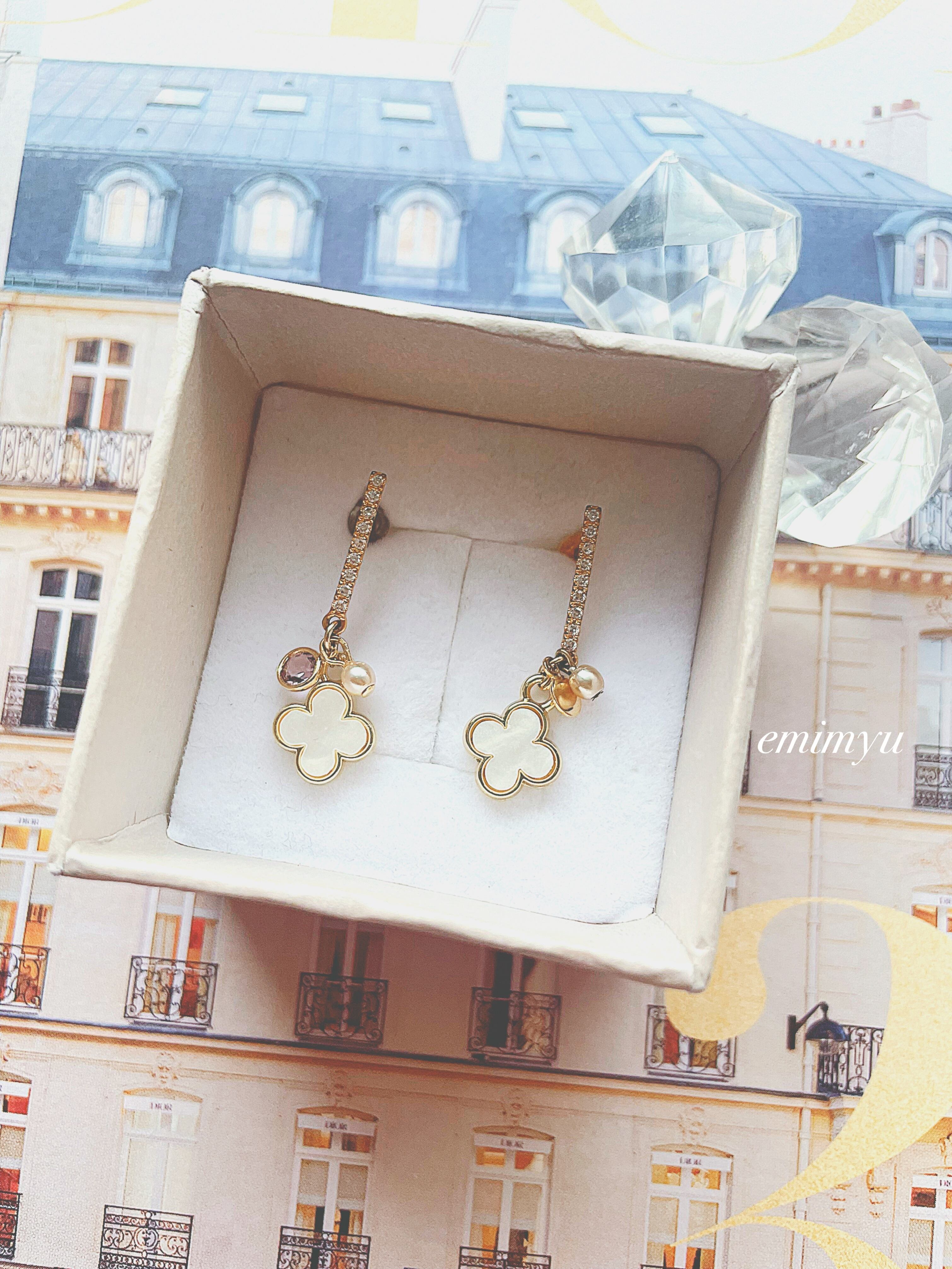 フラワーのマザーオブパールやジルコニアピアス、細かなパール達が絶妙に組み合わさったデザインは、着けるだけで女性らしさが引き立ちます。