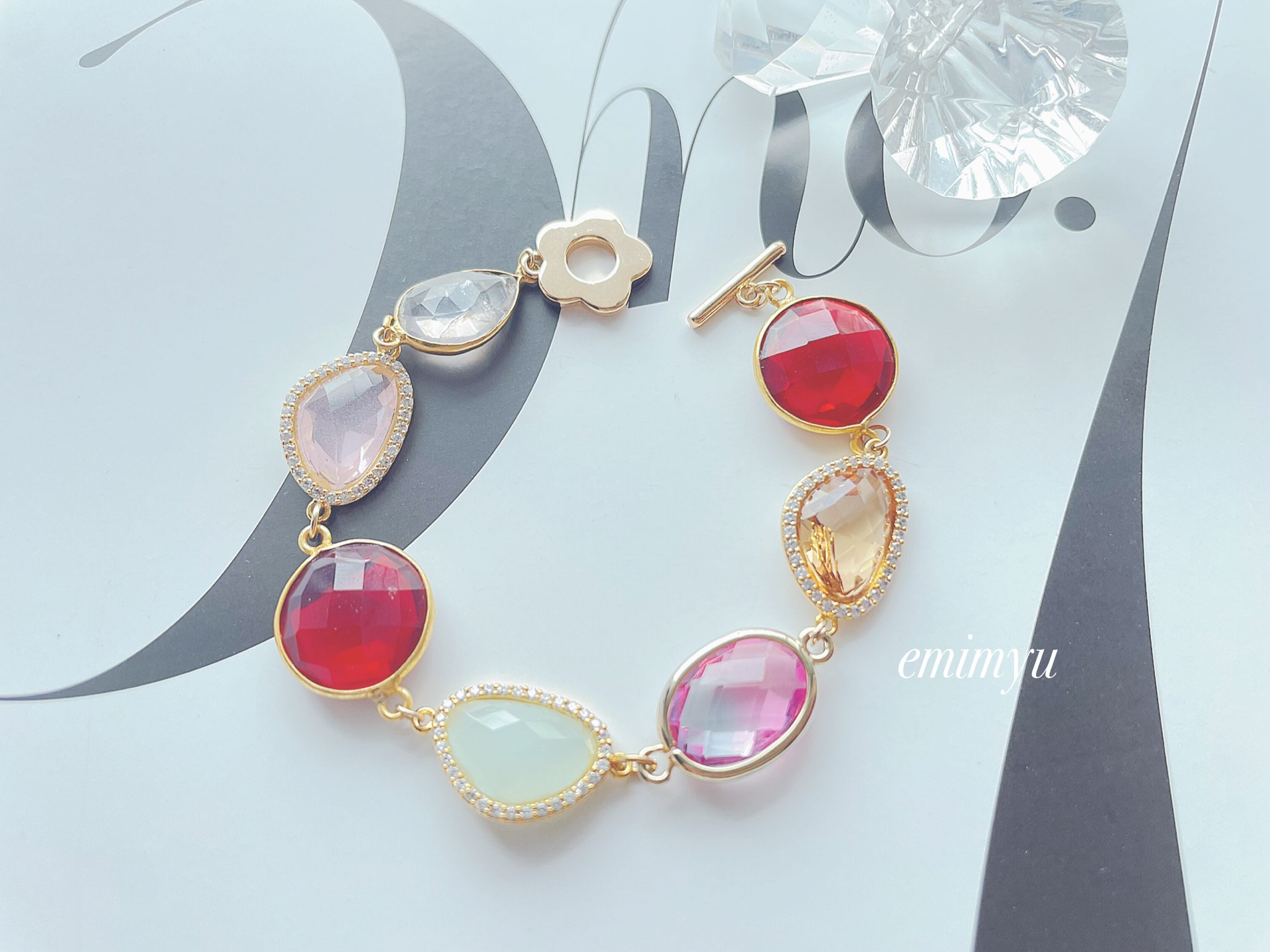 Crystal Bijou Design Braceletは、洗練されたデザインと美しい輝きが特徴のブレスレットです。