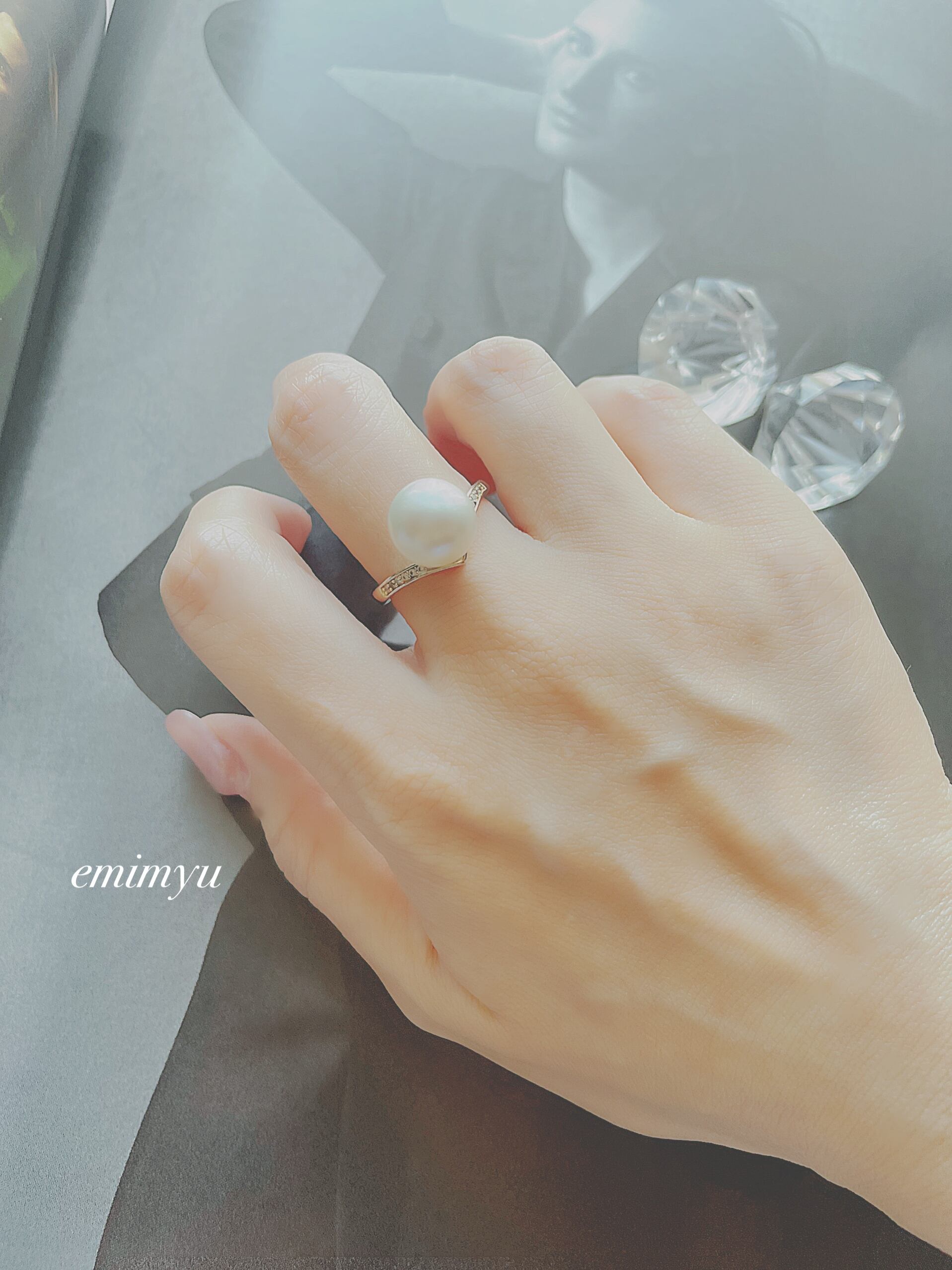 繊細な指先を彩るGrayPearlElegantVRing