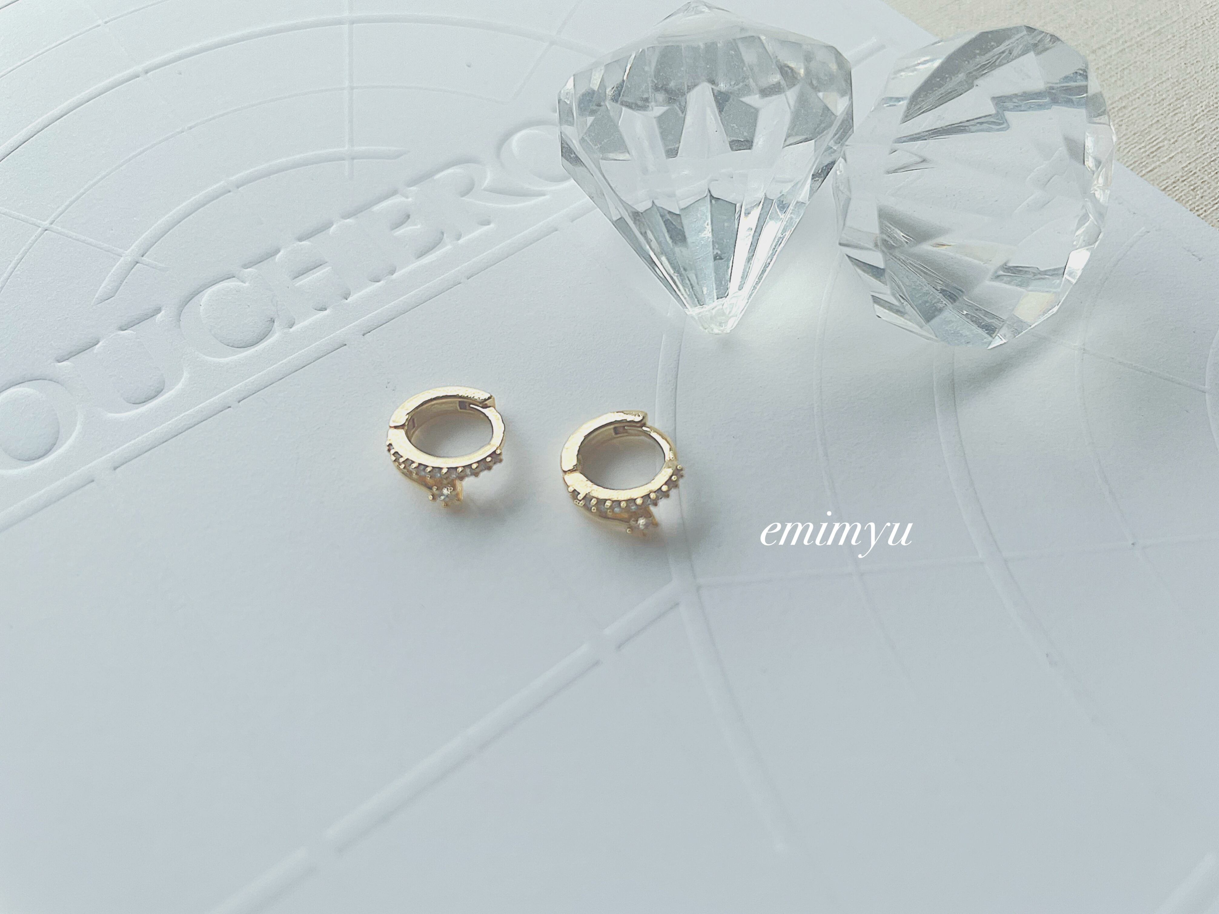 このピアスは、耳元で優しく輝き、シンプルながらも存在感のあるスタイルを演出します。